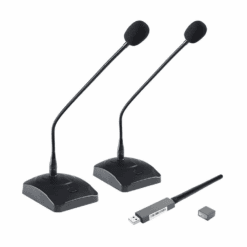 – Gồm 2 mic cổ ngỗng không dây và 1 bộ thu phát kết nối với máy tính qua cổng USB
